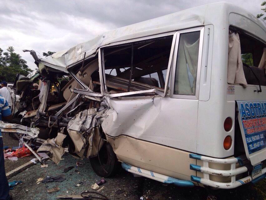 El vocero de la Amet, coronel Diego Pesquiera confirmó a través de su cuenta de Twitter de la muerte de 10 personas: "Al menos 10 personas muertas y una cantidad indeterminada de heridos al colisionar minibús con camión a la altura km 30 autovía de Samaná"