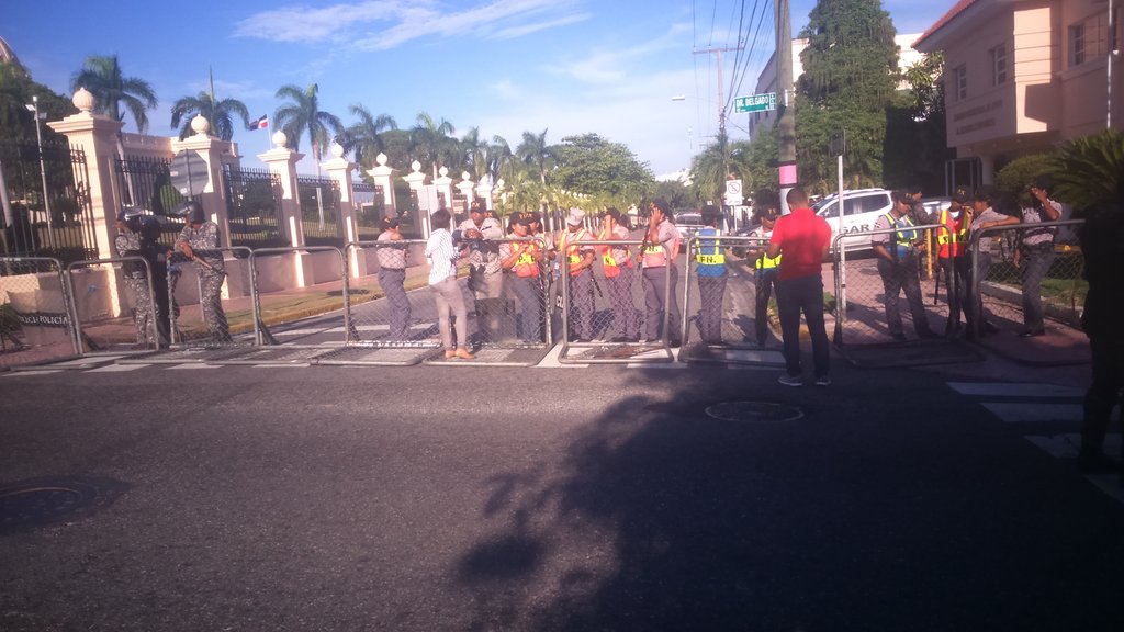 Agentes de la Policía Nacional han vuelto a impedir que ciudadanos y ciudadanas se manifiesten frente a las oficinas de la #OISOE detrás del Palacio Nacional , sede del gobierno dominicano, pese que un tribunal falló a favor de que se permitiera la protesta de la ciudadanía.
