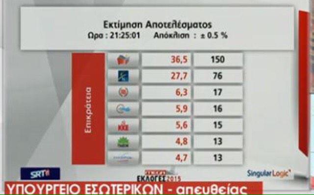 Syriza estaria a punto de duplicar en escaños a Nueva Democracia gracias a los 50 de bonus #grecia2015