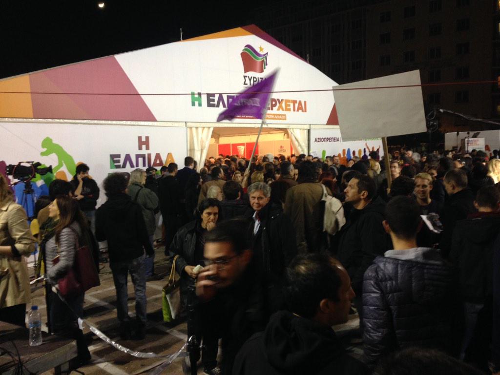 En la carpa d #Syriza hay euforia pero para estar a punto de conseguir mayoria absoluta son muy pocos: escasos miles