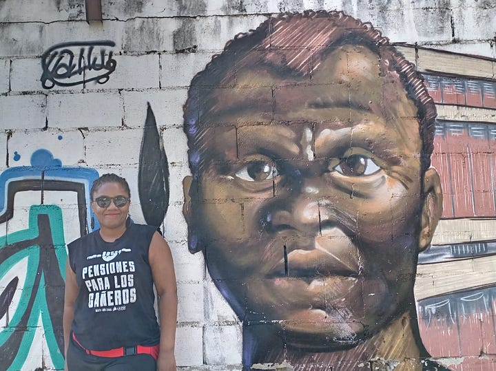 Un mural enorme nos recibió, un rostro de mujer negra en las paredes de La Pequeña África. Conceição Evaristo escritora escritora afrobrasileña, en la Pequeña África tiene su casa cultural La Casa Escrevivência, espacio de encuentro de la cultura afrobrasileña en el corazón de Río.