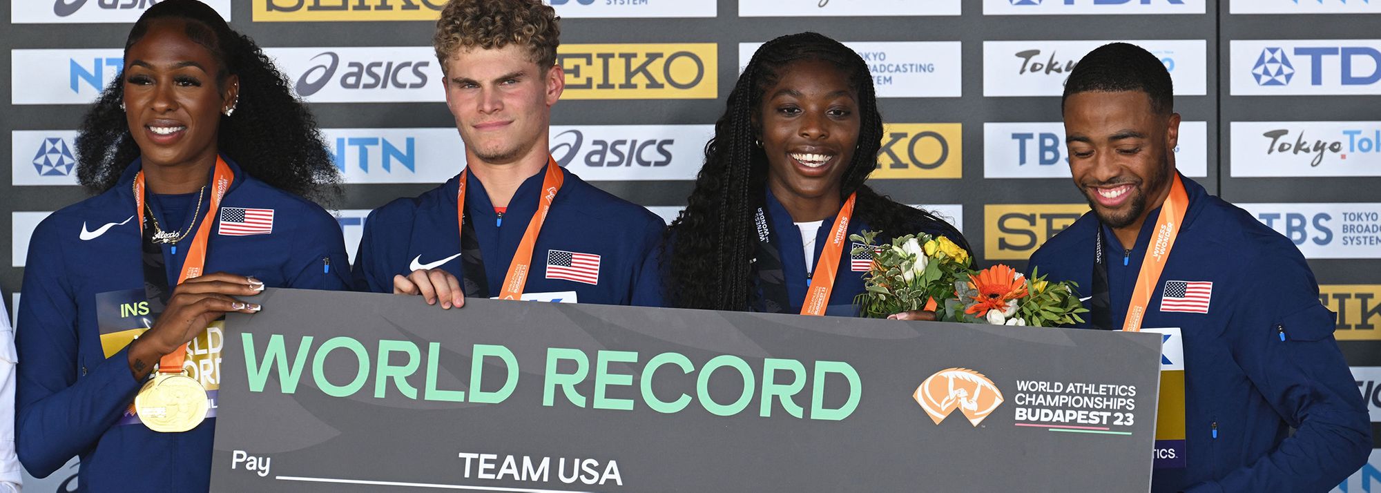 El equipo mixto estadounidense de 4x400 m fue el último en recibir un premio de récord mundial en el Campeonato Mundial de Atletismo, tras triunfar con 3:08.80 en el Campeonato Mundial de Atletismo Budapest 23.