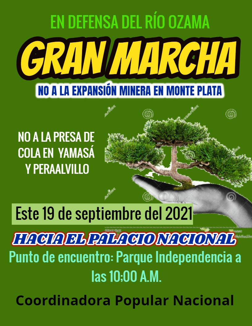 La Coordinadora Popular Nacional ratificó hoy, la convocatoria de una marcha al Palacio Nacional programada para el domingo 19 de septiembre 2021.
