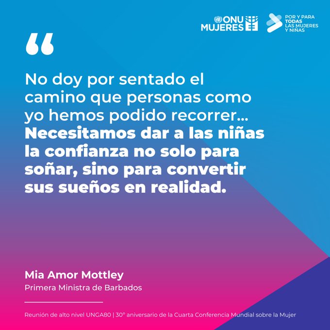 En este contexto histórico, líderes de todo el mundo se reunieron en la Reunión de Alto Nivel de la Asamblea General en el Trigésimo Aniversario de la Cuarta Conferencia Mundial sobre la Mujer al comienzo de la Semana de Alto Nivel de la AGNU80, para celebrar la Declaración de Beijing como la agenda global más visionaria e innovadora para la igualdad de género, y para lanzar un llamado para afirmar que los derechos de las mujeres y las niñas deben seguir siendo una fuerza unificadora.