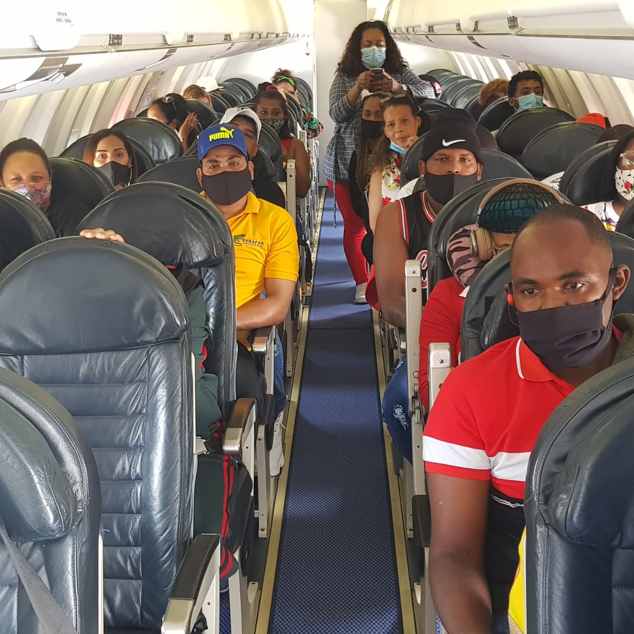 Los 35 dominicanos y dominicanas, de un total de 50, llegaron al país en horas de la tarde del sábado 3 de octubre de 2020 en un vuelo chárter de la línea aérea Air Century, por el Aeropuerto Internacional Joaquín Balaguer, del Higüero, Santo Domingo Norte.