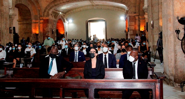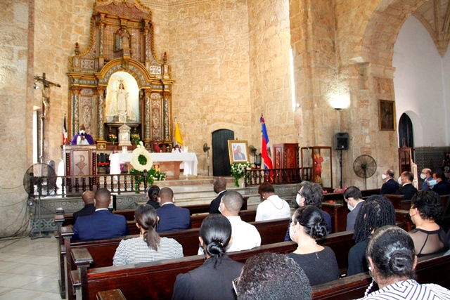 SANTO DOMINGO, RD.- Una eucaristía a instancia de la Embajada de Haití en República Dominicana fue celebrada la mañana del miércoles 22 de julio en la iglesia Las Mercedes de Santo Domingo, en memoria del presidente Jovenel Moise, asesinado el pasado 7 de julio por mercenarios en su residencia de Puerto Príncipe, Haití.