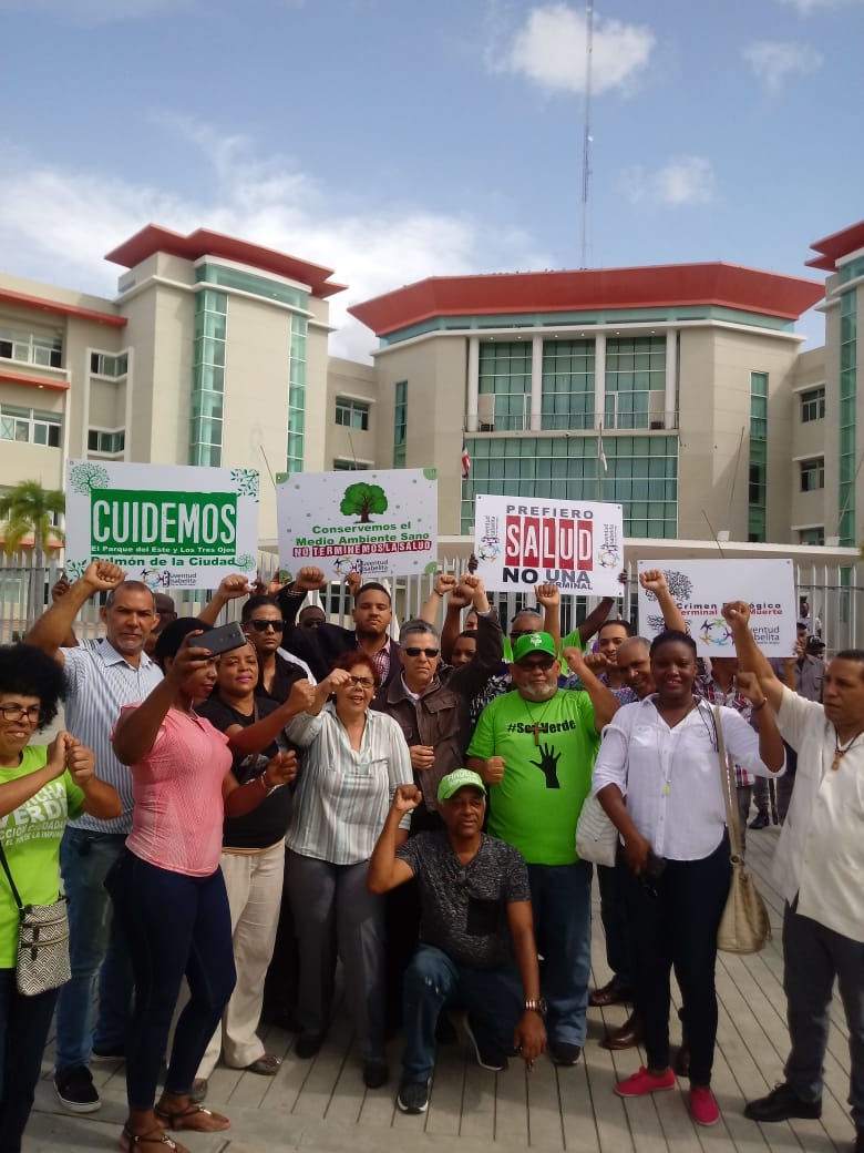 Comunitarios de Santo Domingo Este acudieron a la alcaldía de éste município, para reclamar al alcalde Alfredo Martínez, que explique las circunstancias en las que permitió que Obras Públicas tomara ilegalmente terrenos del Parque Mirador del Este, para hacerle una terminal de autobuses al sector privado.