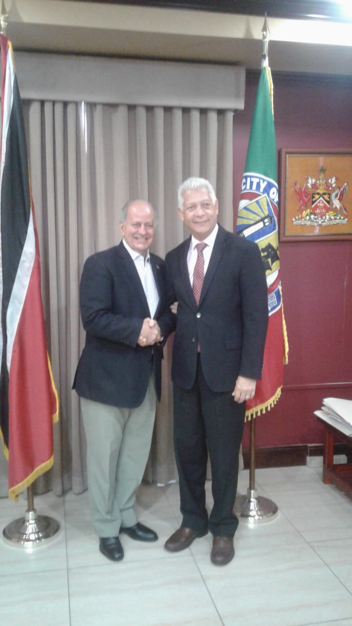 El embajador dominicano en Trinidad y Tobago , Dr. José Serulle Ramia, se reunió hoy con el Alcalde de Puerto España, Joel Martínez, para dar seguimiento a lo relativo a la solicitud de hace un año por la Embajada dominicana de contar con una plaza que llevaría el nombre de República Dominicana.