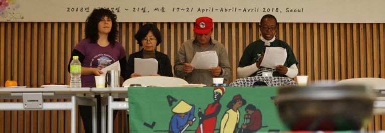 Campesinos y campesinas del mundo han exigido que se garantice el derecho a la tierra y llama a resistir de manera organizada a estos tratados que intentan apoderarse de nuestros bienes naturales y mercados locales, para beneficio del capital transnacional y del agronegocio con el encubridor silencio de los Estados.