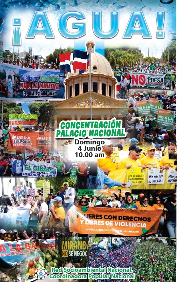 Un conjunto de organizaciones ambientalistas y populares ratificaron hoy la convocatoria a concentración nacional frente al Palacio Nacional el próximo 4 de junio, a fovor del agua, contra la minería y por el derecho a la vida.