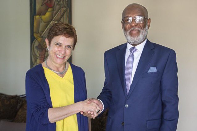 Maria Isabel Salvador, nueva jefe de la Binuh, llegó este domingo a Puerto Príncipe, Haití, para asumir sus nuevas funciones. Fue reciba por el canciller haitiano Jean Victor Geneus. Ambos funcionarios tuvieron una corto reunión no oficial en la terminar aeroportuaria de la capital haitiana.