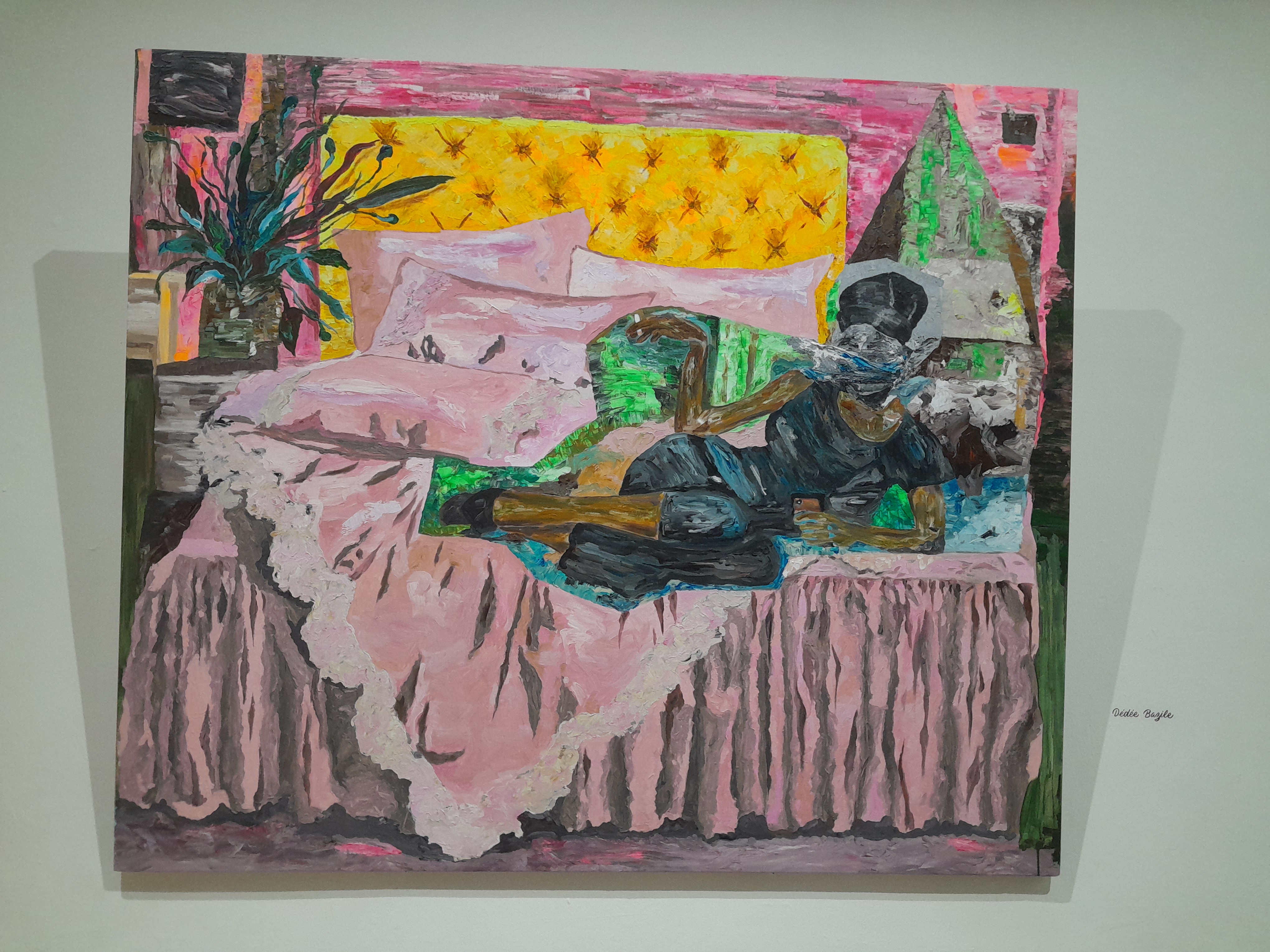 José Durán. Fui diseñador de moda por muchos años y siempre me ha gustado trabajar con historias y crear fantasías también. Mi mamá emigró en los años 80 (década de 1980) a Estados Unidos. Mami hizo muchas cosas aquí. Era peluquera en Santo Domingo, y cuando vino a Estados Unidos tuvo que trabajar también en la limpieza. Tengo tías y amigas que estudiaron en República Dominicana, algunas son abogadas, pero como no estudiaron aquí, tuvieron que trabajar en estas casas, que es un trabajo digno. Pero, cuando comencé a crear historias con la pintura, quise empoderar a las mujeres que realizan estos trabajos, situación que existe en otras partes del mundo. Cuando vivía en Taiwán, vi filipinas que trabajaban en casas. Quise poner a las mujeres en espacios que no fueron creados para ellas, disfrutando, que se tomaran selfis, es una fantasía.