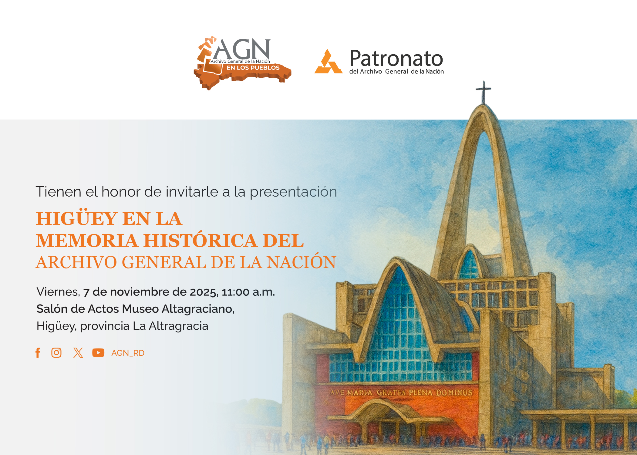 El Archivo General de la Nación (AGN) y su patronato llevarán a cabo la actividad "AGN en los Pueblos" en la ciudad de Higüey el próximo viernes 7 de noviembre de 2025, con el objetivo de acercar la historia y el patrimonio documental a las comunidades locales.
