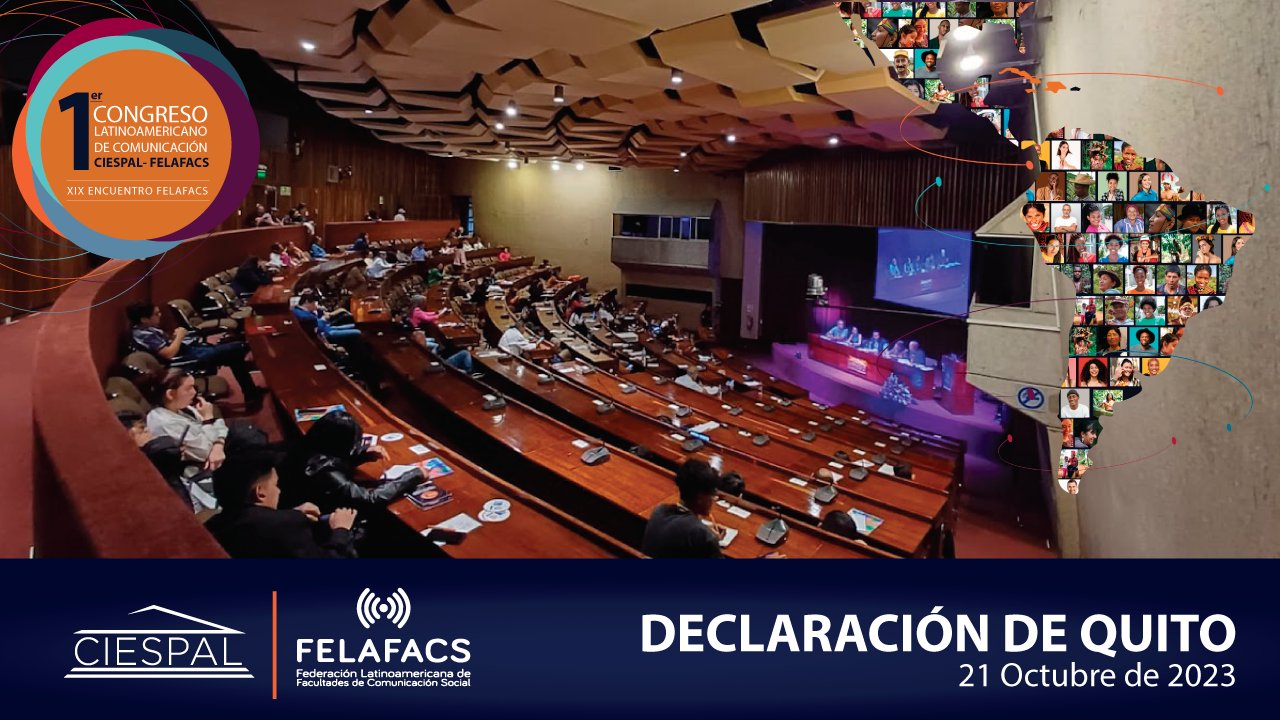 En la ciudad de Quito, a los 21 días del mes de octubre del 2023, las organizaciones de comunicación; facultades de comunicación social y periodismo; personas académicas, investigadoras y estudiosas de la comunicación, reunidas en el marco del Primer Congreso de Comunicación Latinoamericana CIESPAL-FELAFACS,