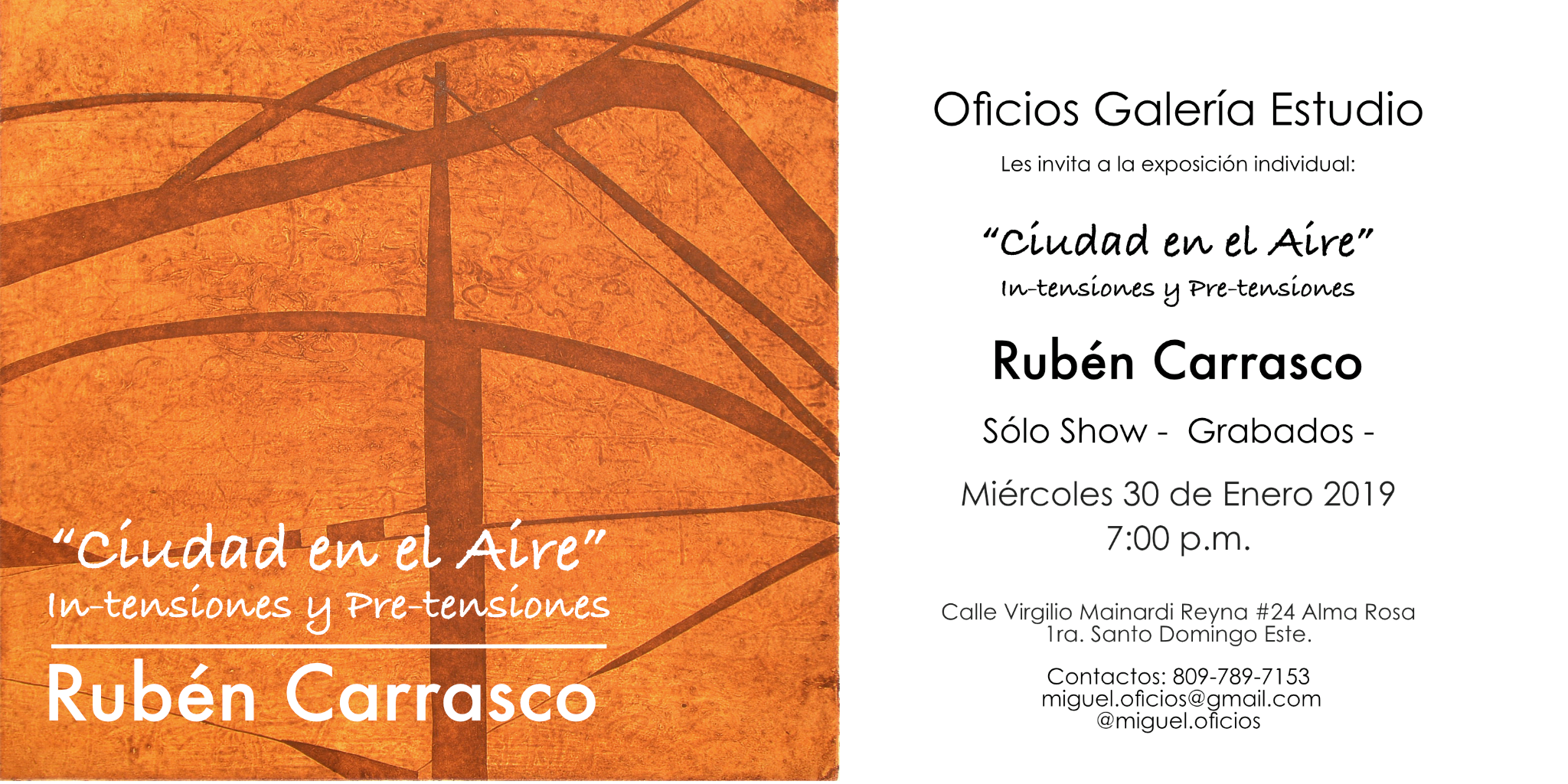 A partir del 30 de enero, Oficios Galería Estudio presenta la exposición “Ciudad en el Aire” In-tensiones - Pre-tensiones del connotado artista dominicano Rubén Carrasco, un relato amplio de la urbe como espacio geográfico y conceptual que apela con maestría a una sociedad más justa y equilibrada.