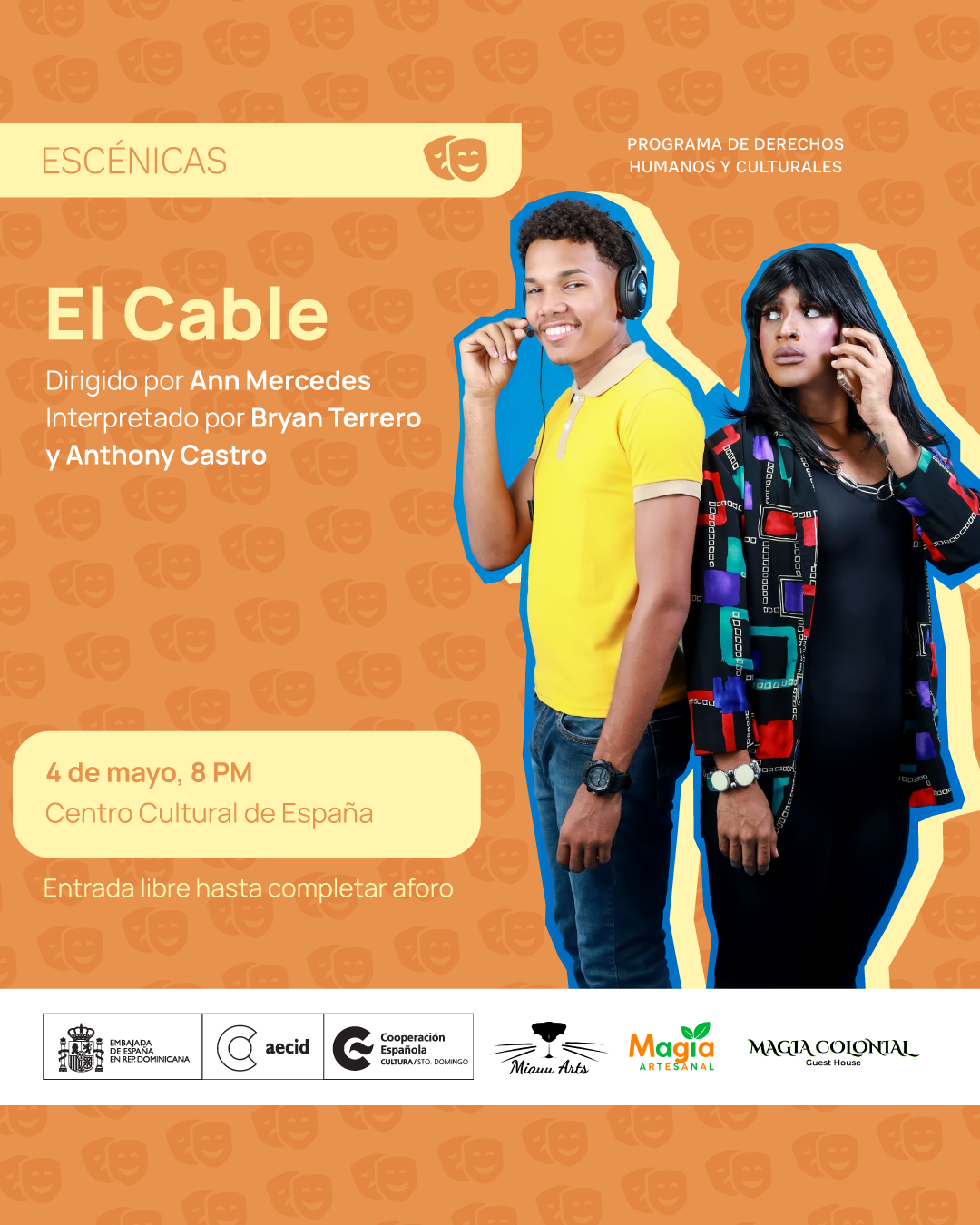 El CCE presenta “El Cable” una comedia de Ann Mercedes que refleja la vida cotidiana el 4 de mayo a las 8:00 PM en el Centro Cultural de España Santo Domingo, Zona Colonia, Distrito Nacional.