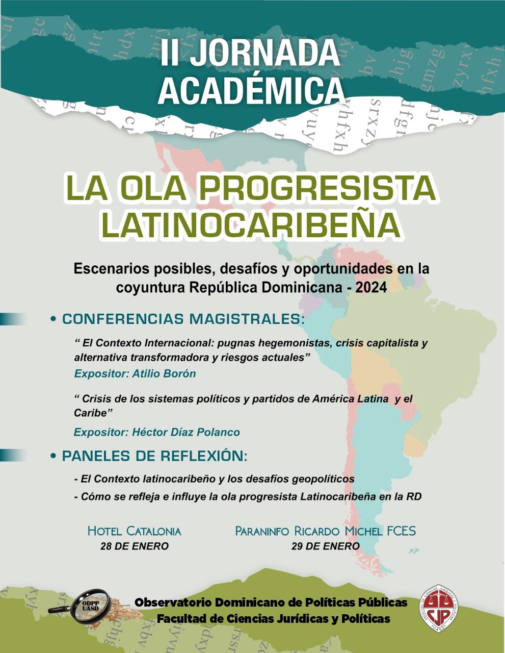 La Universidad Autónoma de Santo Domingo (UASD) realizó la “ll Jornada Académica: La Ola Progresista Latinoamericana”, con el objetivo de desarrollar una perspectiva de análisis dinámico que posibilite una progresiva reflexión sobre la realidad de la República Dominicana.