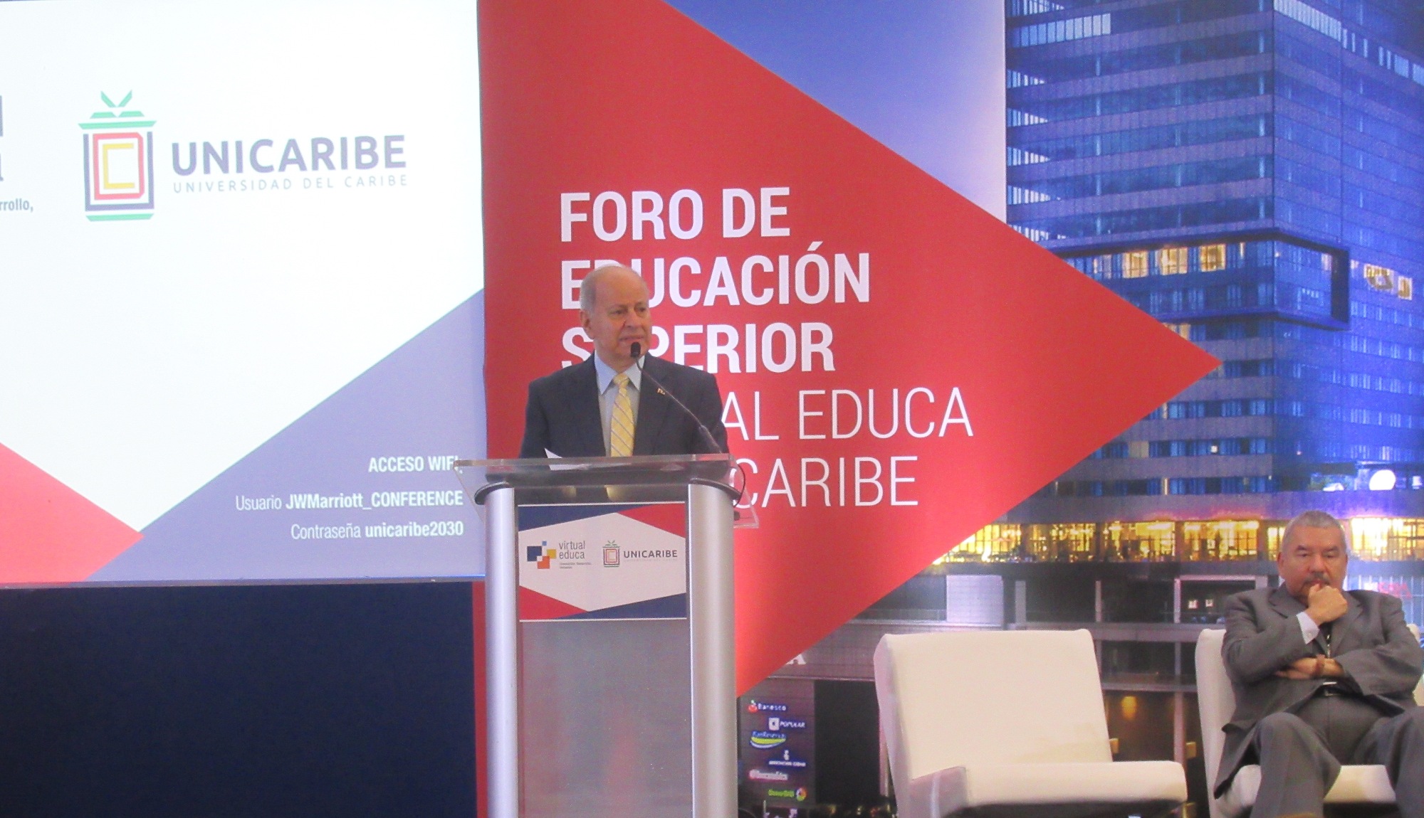 El diplomático dominicano pronuncia Conferencia Magistral durante el Foro Virtual Educa Gran Caribe organizado por EDUCA en el que expresó que las universidades deben aportar al desarrollo y unidad de los pueblos caribeños.