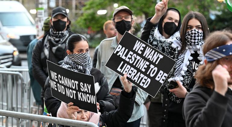El Alto Comisionado para los Derechos Humanos considera que algunas de las medidas policiales adoptadas para dispersar las protestas en universidades de Estados Unidos contra la guerra de Gaza en universidades “parecen desproporcionadas”.